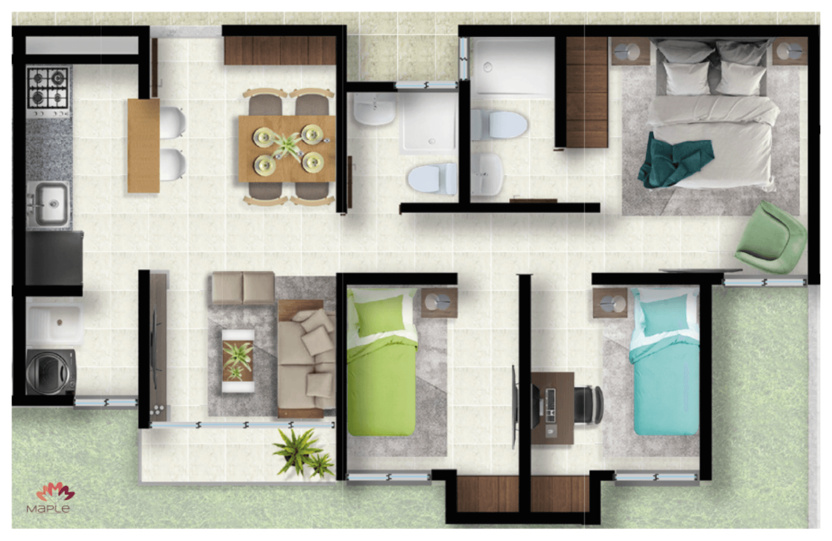 Distribución pensada para comodidad familiar y optimización de espacios. Ideal para familia joven o inversión en arrendamiento.